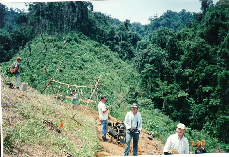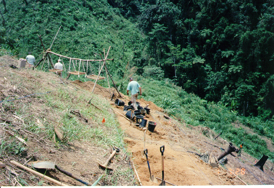 WE BEGAN OUR JOURNEY OUT TO THE SITE WHICH WAS A GOOD TWO MILE WALK FROM THE NEAREST ROAD OR VILLAGE. THE TERRAIN WAS VERY DEEPLY VEGATATED WITH TALL , SHARP GRASS. THE WORKERS WE HAD WITH US HAD TO MAKE THIS TRAIL FOR US.