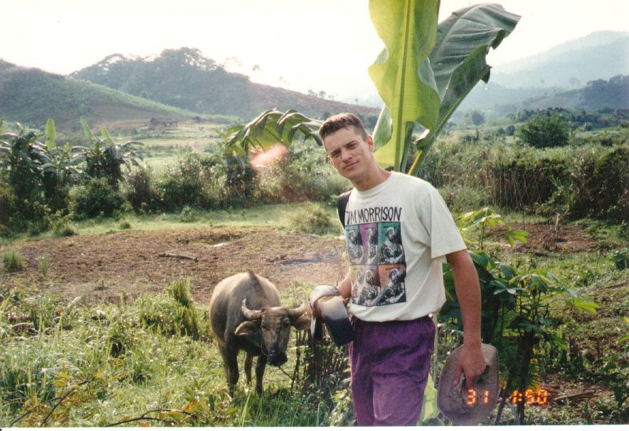 ON THE WAY OUT TO THE SITE. ON THE WAY I STOP TO POSE WITH A VIETNAMESE TRACTOR (WATER BUFFALO).