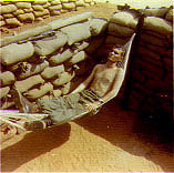 .... I had a busy day and spent last night in Dong Ha. I failed to get a truck but did bump into a man who used to be in Lima company, so I stayed in his place. The mess hall up there has 1000% better food and even has native women to pick up your plate when you leave it (don't worry, they were all ugly). I also saw "In the Heat of the Night" again. It was good. He's got it made up there--good food, indoor movie, an ice chest with beer in it right next to his bed, etc. etc. The only thing is that it's still Dong Ha, and they still have incoming up there so I don't mind staying here....