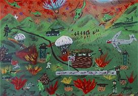 | Aurence's wife, Biegun, wrote "My husband paints as an Outsider artist and does a few different subject matters but mostly Vietnam paintings. The response to his works has been enormous and he can't paint enough Vietnam paintings to keep up with the demand. They are powerful and moving pieces that have captured outsider collectors. You can view his site at: Just click on Aurence' s url http://www.aurence.net to go to his main page. You will see other links to 'sold' works and his bio." | |||||||||||
