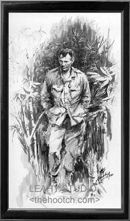 "October 1967, in the Hai Lang Forest, south of Quang Tri, during Operation Medina. Delta Co. 1/1 skipper reflects on his unit's coming to the aid of an ambushed brother company, in the dense piedmont. Edition of 190 prints with 10 artist's proofs."