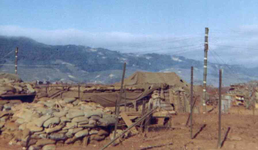 The first picture was taken by Earl Clark, Alpha Company 1st Battalion 26th Marines during the siege of Khe Sanh in 1968. He was standing near the ammo dump. The new scars of bomb craters on the hills to the north of the base can be seen.