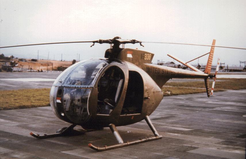 OH-6 Cayuse Light Observation Helicopter (LOH) sitting on the pad at Camp Eagle (1972)