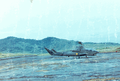 Fire Base Birmington -- 175mm Self-propelled Howitzer in background. Also, LOH on the pad.