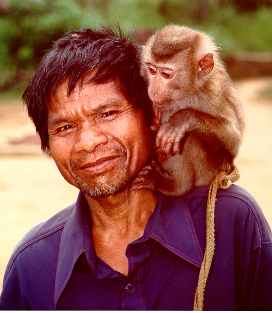 Bru man and his pet monkey