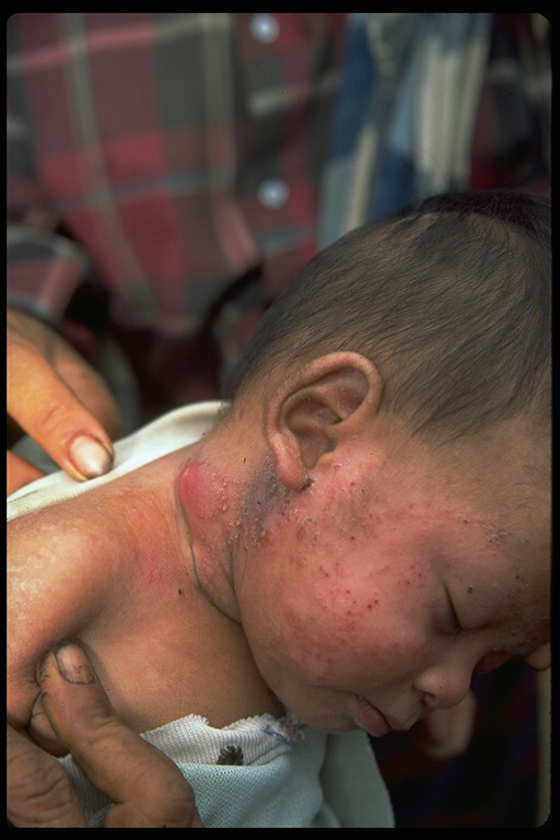 A sick Bru baby. Your funds help by medical supplies and help to cure these children