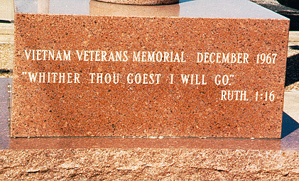 As it stands today, the Wentzville Vietnam Veterans Memorial consists of a single column of red Missouri granite, topped by the carved figure of an eagle. Inscribed on the column's base is: