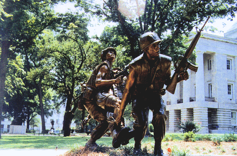 This statue is located in Raleigh, North Carolina. It stands in front of the old State Capitol Building. It was commissioned by private donations from veterans groups, and other donors, around the state.