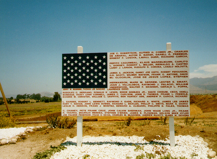 An American Flag Monument with the names of those from the local area who were killed in action in Vietnam