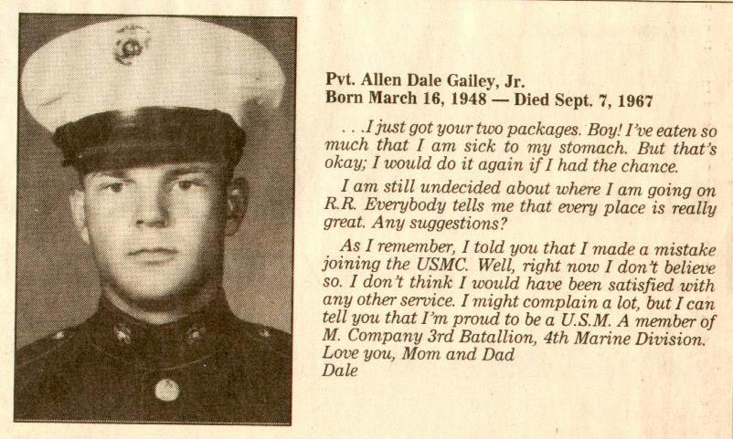 Pvt. Allen Dale Gailey, Jr. USMC, KIA September 7, 1967