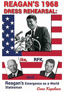 Behind the scenes, Reagan's private political mentor was Dwight Eisenhower, and Reagan's public political foe was Robert Kennedy. Reagan scholar Kopelson's analysis relies on newly uncovered audiotapes from candidate Reagan's days as governor of California, the Eisenhower-Reagan correspondence and files, Ike's post-presidential diary, and interviews with 35 grassroots Reagan activists from 1968.